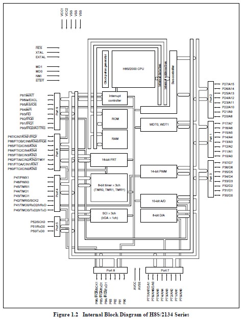 Features:(1)upward-compatible with H8/300 and H8/300H CPUs- can execute H8/300 and H8/300H object programs;(2)general-register architecture-sixteen 16-bit general registers (also usable as sixteen 8-bit registers or eight 32-bit registers);(3)sixty-five basic instructions such as 8/16/32-bit arithmetic and logic instructions and powerful bit-manipulation instructions;(4)power-down state:transition to power-down state by sleep instruction and CPU clock speed selection;(5)all frequently-used instructions execute in one or two states;(6)two CPU operating modes:normal mode and advanced mode.