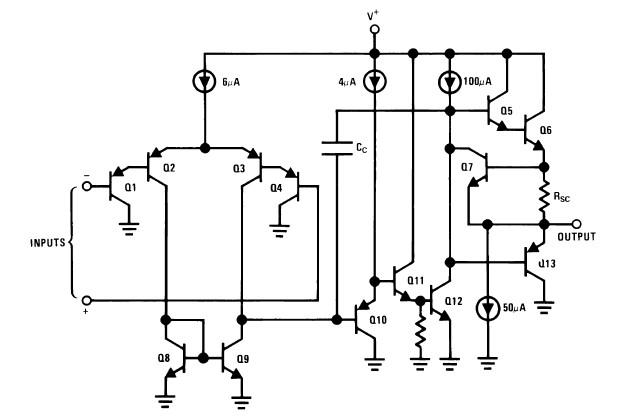 LM124J features: (1)Internally frequency compensated for unity gain; (2)Large DC voltage gain 100dB; (3)Wide bandwidth (unity gain) 1 MHz(temperature compensated); (4)Wide power supply range: Single supply 3V to 32V or dual supplies ±1.5V to ±16V; (5)Very low supply current drain (700 μA)-essentially independent of supply voltage; (6)Low input biasing current 45 nA(temperature compensated); (7)Low input offset voltage 2mV and offset current: 5nA; (8)Input common-mode voltage range includes ground; (9)Differential input voltage range equal to the power supply voltage; (10)Large output voltage swing 0V to V+ -1.5V.