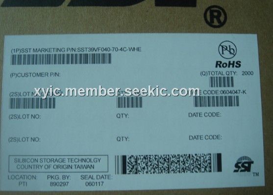 SST39VF040-70-4C-WHE features: (1)Organized as 64K x8 / 128K x8 / 256K x8 / 512K x8; (2)Single Voltage Read and Write Operations; (3)Superior Reliability: Endurance: 100,000 Cycles (typical), Greater than 100 years Data Retention; (4)Low Power Consumption(typical values at 14 MHz): Active Current: 5 mA (typical), Standby Current: 1 μA (typical); (5)Sector-Erase Capability:Uniform 4 KByte sectors; (6)Fast Read Access Time:70 and 90 ns; (7)Latched Address and Data; (8)Fast Erase and Byte-Program: Sector-Erase Time: 18 ms (typical), Chip-Erase Time: 70 ms (typical), Byte-Program Time: 14 μs (typical), Chip Rewrite Time:8 seconds (typical); (9)Automatic Write Timing:Internal VPP Generation; (10)End-of-Write Detection:Toggle Bit, Data# Polling; (11)CMOS I/O Compatibility ; (12)JEDEC Standard:Flash EEPROM Pinouts and command sets.